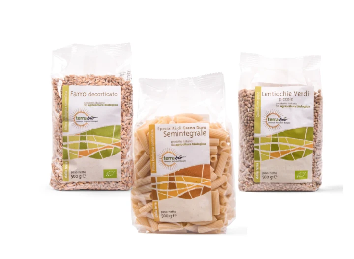 I prodotti confezionati Terrabio sono alimenti biologici pronti per il consumo o per la vendita al dettaglio, frutto di un’attenta trasformazione interna. La gamma comprende pasta, riso, legumi, cereali e mix per colazione certificati biologici.